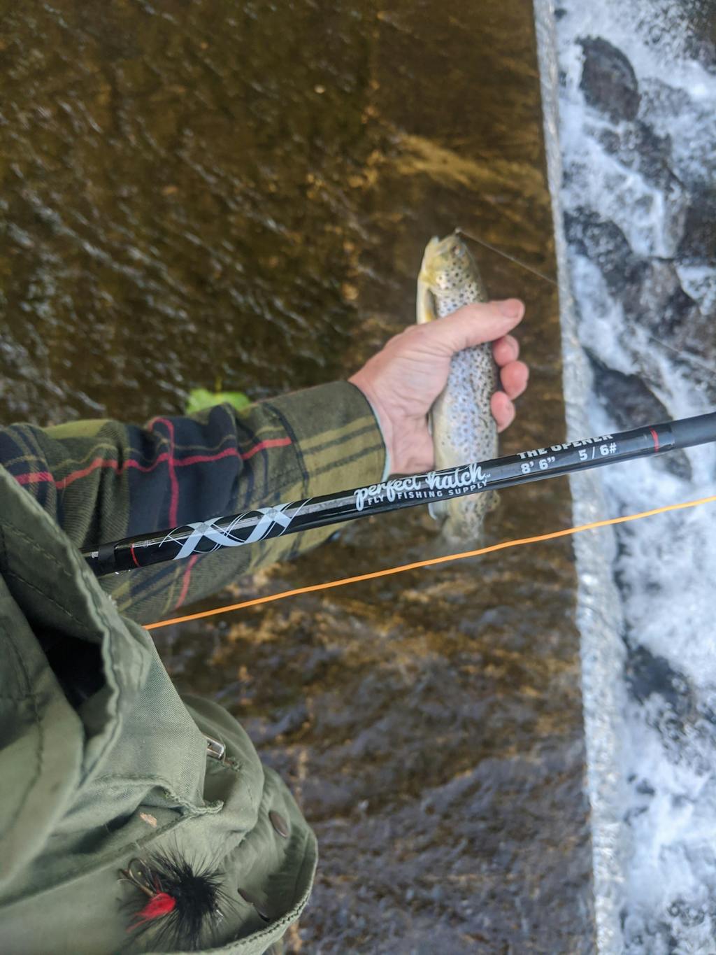 I caught a couple of nice Brown Trout this past weekend (in Benton, PA) on this rod using a Perfect Hatch Dry Fly Nymph.