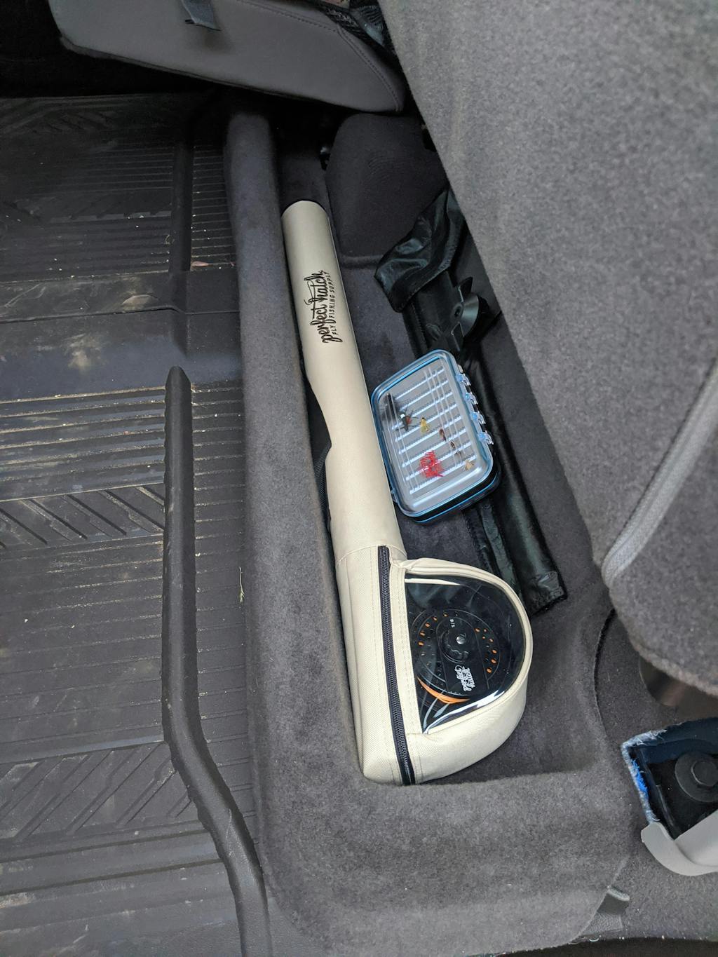 The carry tube is sturdy but compact. It's small enough to fit under the back seat of Silverado. Is light enough to take on a long hike to find that perfect fishing spot.